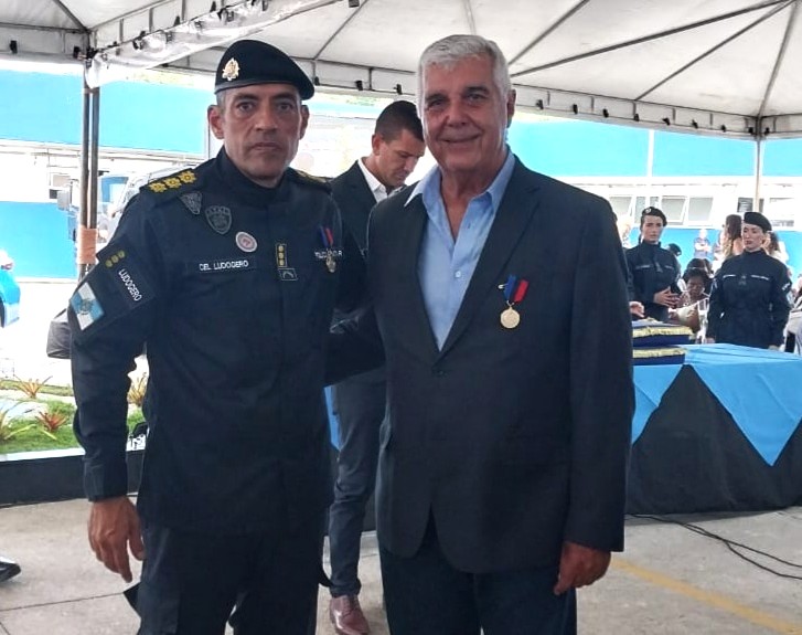 O presidente do HotéisRIO, Alfredo Lopes, foi homenageado no dia 27 de fevereiro com a Medalha do Mérito Capitão Jonathan, em reconhecimento a seus relevantes serviços prestados no âmbito da segurança pública. A cerimônia aconteceu na sede do 31º Batalhão de Polícia Militar, sob o comando do Coronel Antônio Ludogero da Silva Neto. A honraria foi entregue ao presidente pelo Coronel Luciano.