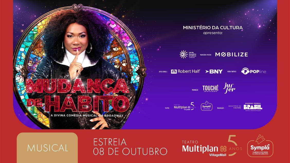 O musical “Mudança de Hábito” está de volta ao Brasil com uma nova montagem que promete encantar o público. O espetáculo chega em outubro no Rio para uma série de apresentações no Teatro Multiplan. Com direção de Tadeu Aguiar e direção musical de Laura Visconti, “Mudança de Hábito – A Divina Comédia Musical da Broadway”, que ganhará uma nova roupagem, com diferenciais de cenário e arranjos musicais, traz ao palco uma trama envolvente, repleta de humor e músicas vibrantes, enquanto aborda temas como amizade, transformação e fé. A história acompanha Deloris Van Cartier, uma cantora de boate que se esconde em um convento após testemunhar um crime.