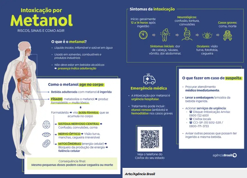 A secretária de Vigilância em Saúde e Ambiente do Ministério da Saúde, Mariângela Simão, destacou que a população já tem acesso ao etanol farmacêutico, e agora o governo está oferecendo uma alternativa, que é o fomepizol. Ela acrescentou que a intoxicação pode ser constatada não somente por exames que mostrem a presença de metanol no corpo, mas por outros, também laboratoriais, como o de gasometria.
