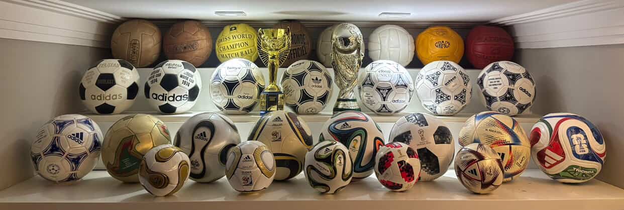 A exposição apresenta uma linha do tempo com bolas das Copas do Mundo desde 1970, incluindo modelos icônicos, como a Telstar, usada no México em 1970, a Azteca, do Mundial de 1986, a Jabulani, da Copa da África do Sul em 2010, e a Brazuca, utilizada no Brasil em 2014. Também fazem parte da mostra bolas mais recentes, como a Telstar 18, da Copa da Rússia em 2018, e a Al Rihla, do Mundial do Catar em 2022.