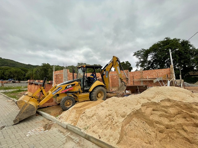 O loteamento já estava com pavimentação, ruas, meio fio, seis postes de iluminação e mais de 50 terrenos demarcados, com 10 construções iniciadas, em fase de alvenaria.