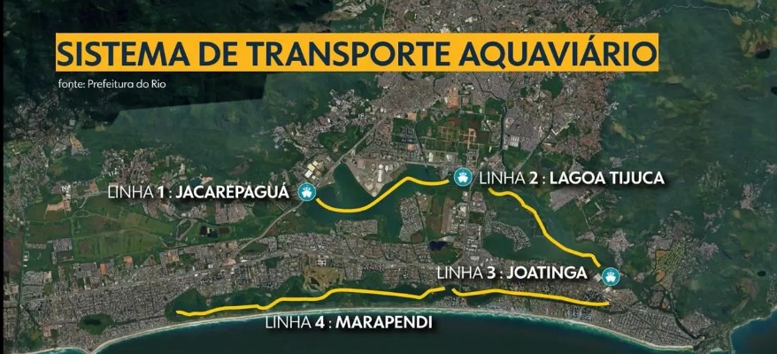 O sistema contará com quatro linhas — Jacarepaguá, Lagoa da Tijuca, Joatinga e Marapendi. As estações terão painéis informativos sobre horários e a quantidade de assentos disponíveis em cada embarcação. O investimento total é de R$ 101 milhões.